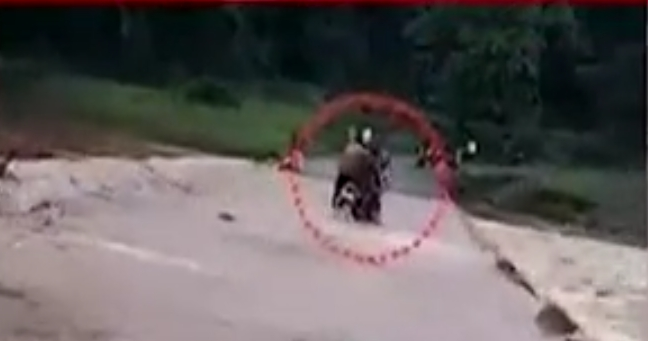 उफनती नदी का पुल पार करते हुए बाइक के साथ बहा युवक, ग्रामीणों ने से बच गई जान