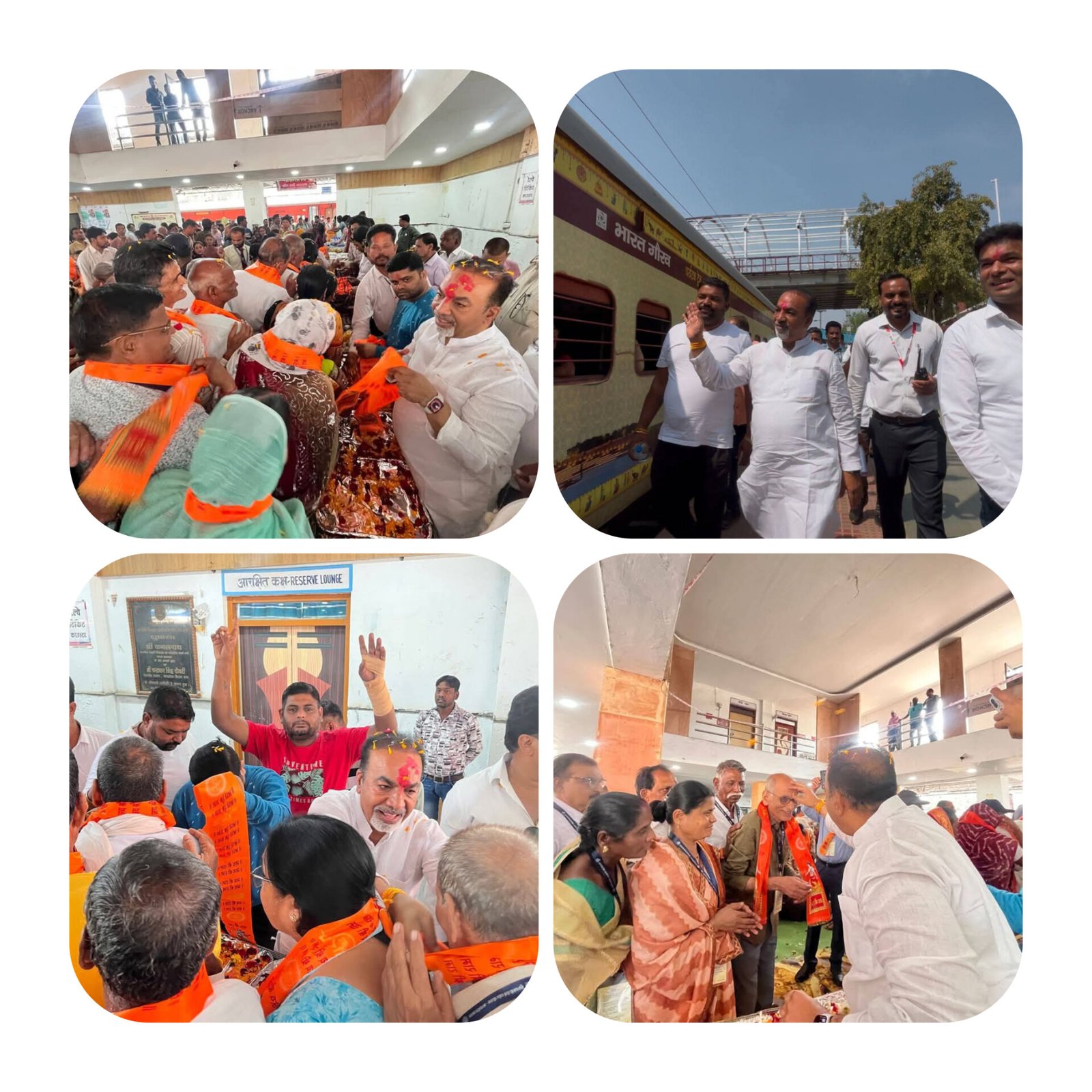भाजपा जिलाध्यक्ष श्री शेषराव यादव ने मुख्यमंत्री तीर्थ दर्शन के यात्रियों को दुपट्टा पहनाकर दी शुभकामनाएं