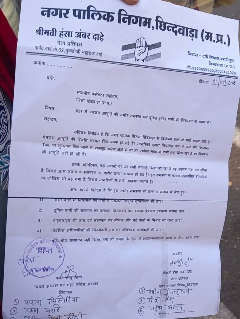 छिंदवाड़ा में पेयजल संकट गहराया, कई वार्डों में दूषित पानी से लोगों में आक्रोश